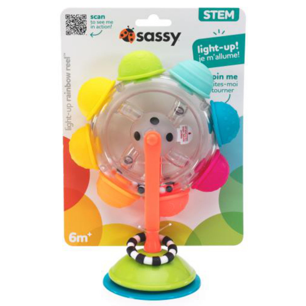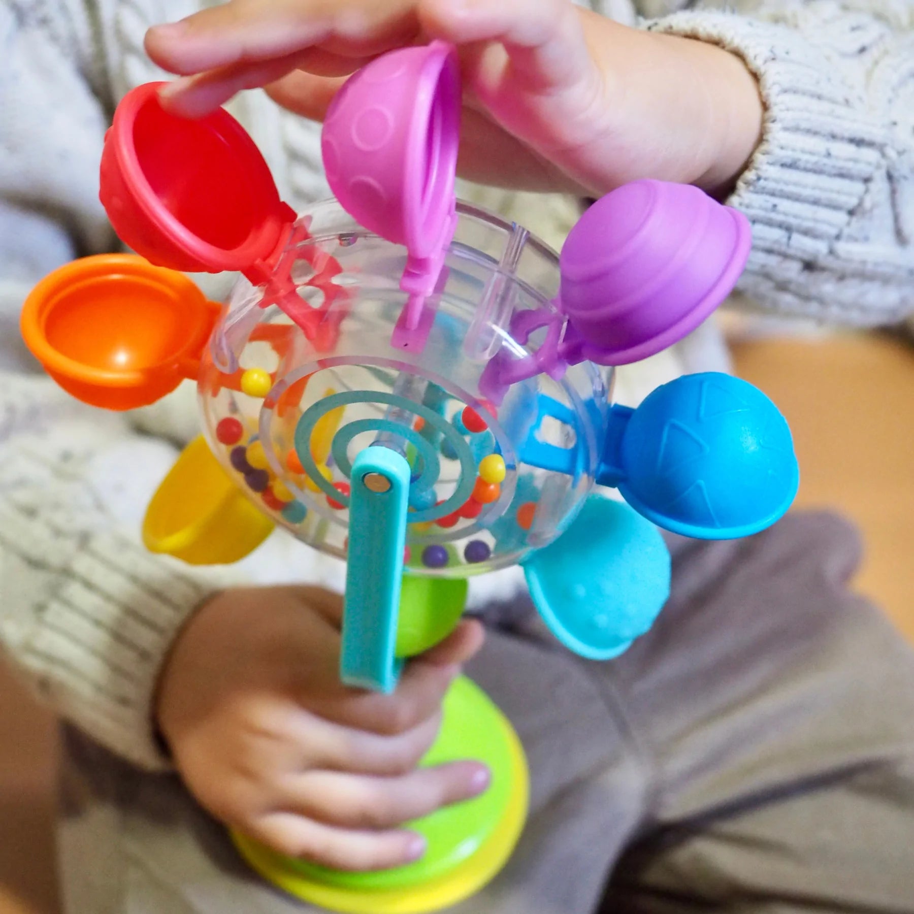 Las cuentas de colores atrapadas en la estructura central transparente permiten al bebé conectar el sonido, la vista y el movimiento.