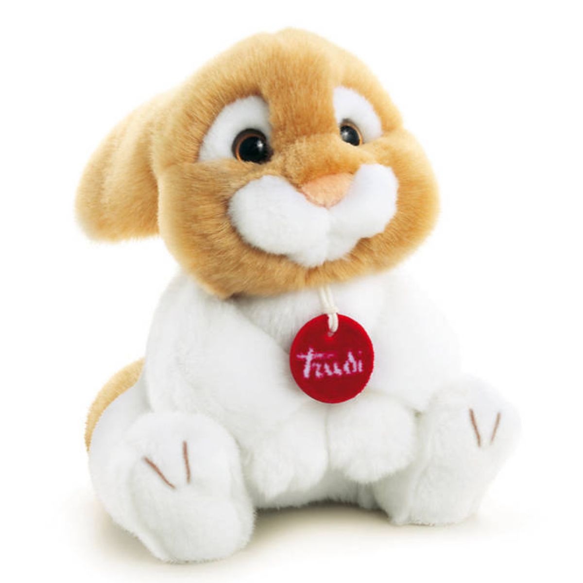 Oliviero es un conejito de suave pelaje blanco y marrón, representado en una posición erguida que realza aún más su simpatía.