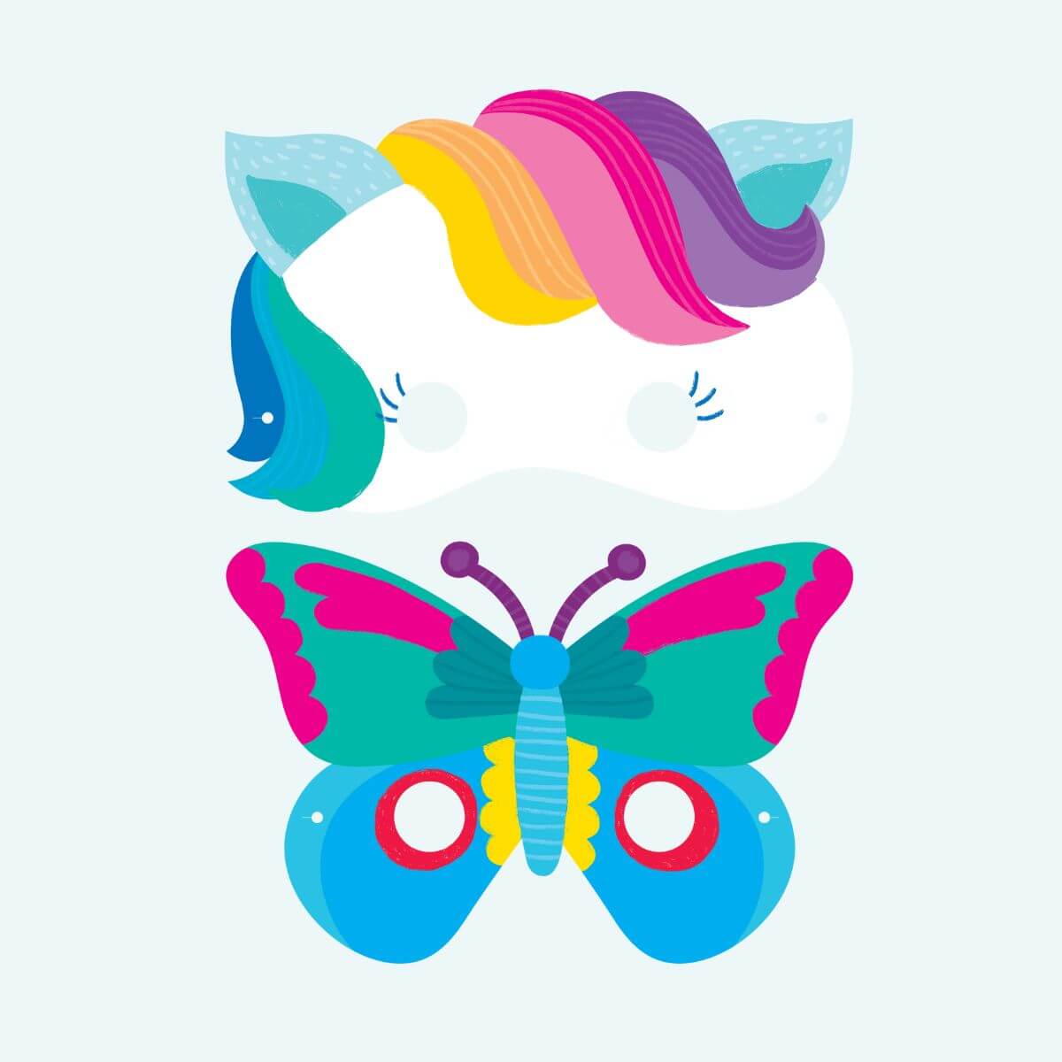 ¡6 máscaras de papel para decorar con pegatinas de color neón!