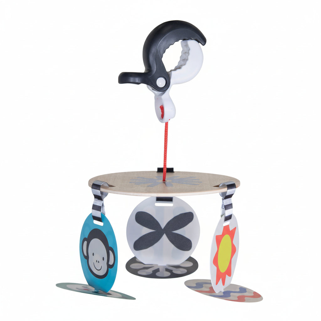 Diversión para llevar en el cochecito, el portabebés o sobre el cambiador.