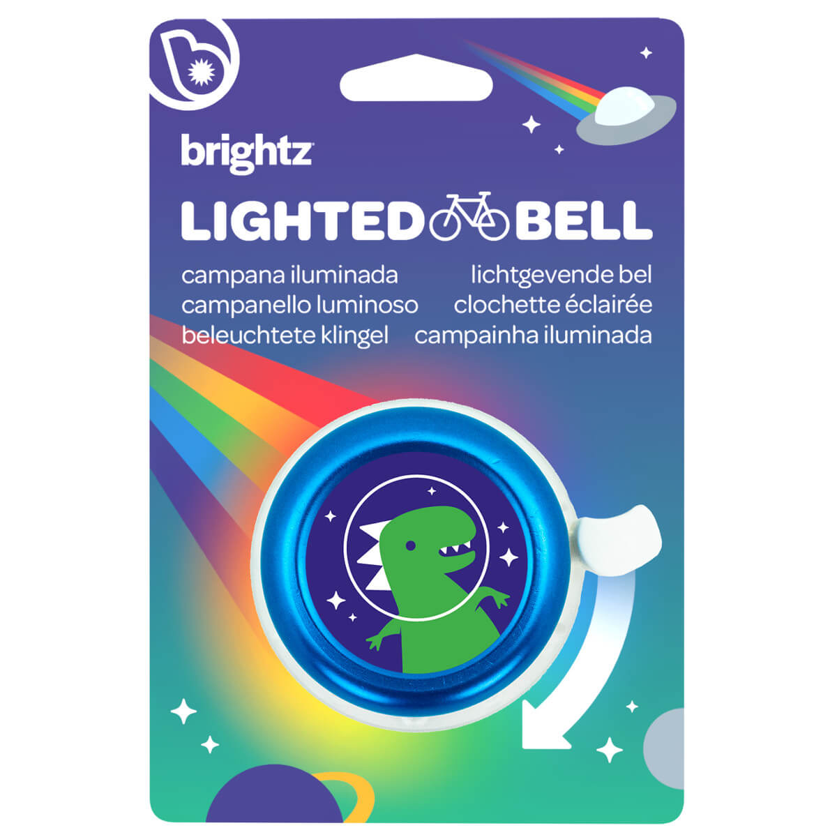 El original timbre luminoso Brightz para bicicleta infantil se fija al manillar y es resistente a la intemperie.